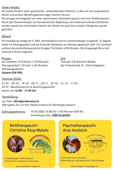 Reittherapie & Psychotherapie im Gruppensetting