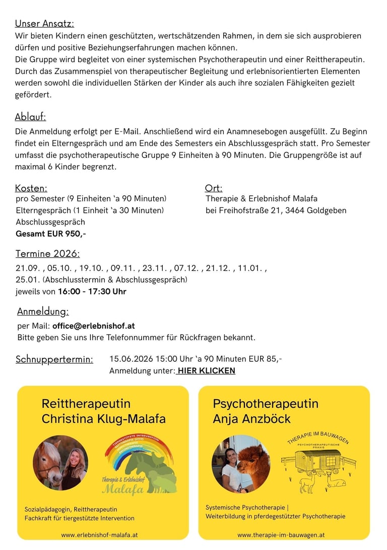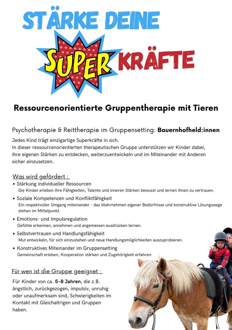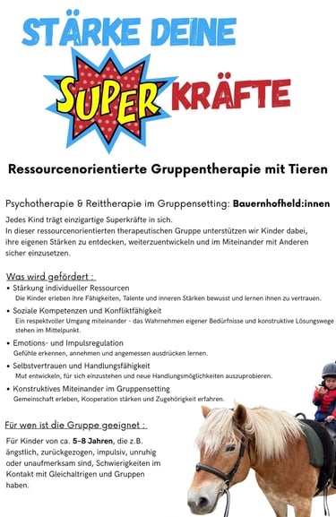 Ressourcenorientierte Gruppentherapie mit Tieren "Bauernhofheld:innen"